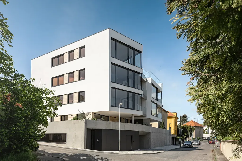 Novostavba se nachází v krásné klidné vilové čtvrti v Praze 4 - Zelený pruh, v dochozí vzdálenosti od lesoparku Dobeška. V domě se nachází pouhých 6 bytových jednotek.
