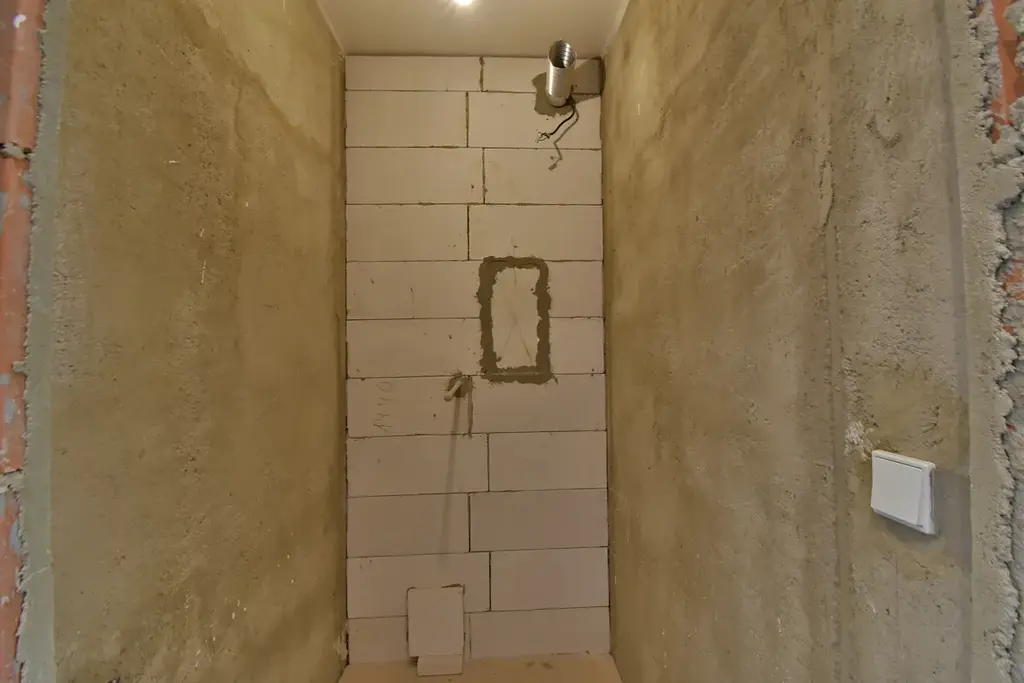 Povrchy stěn: omítky, bílá malba, keramické obklady