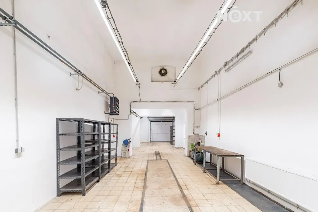 Hala nabízí praktické zázemí včetně samostatné vytápěné kanceláře a sociálního zázemí. Výška stropu cca 6 metrů umožňuje pohodlnou manipulaci i s objemnějším materiálem. Prostor je vybaven sekčními garážovými vraty s dálkovým ovládáním a samostatným vstupem. Dostatek denního světla zajišťují plastová okna, o osvětlení se starají LED trubice. Samozřejmostí je elektroinstalace 230 V i 400 V.