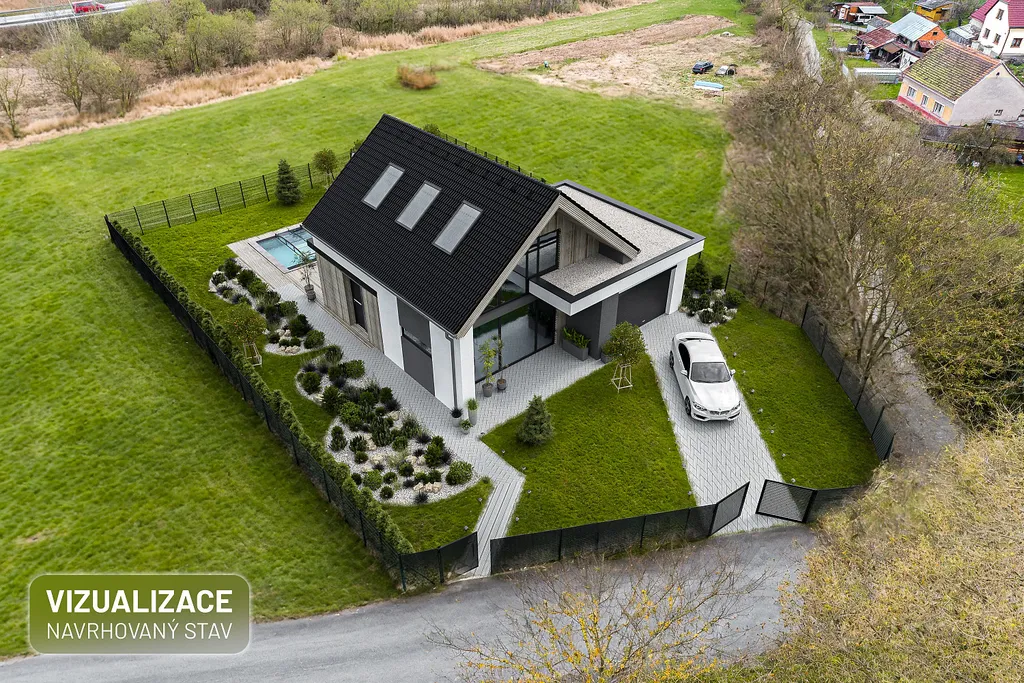 1 159 m² rovinatého pozemku hned u příjezdové cesty.