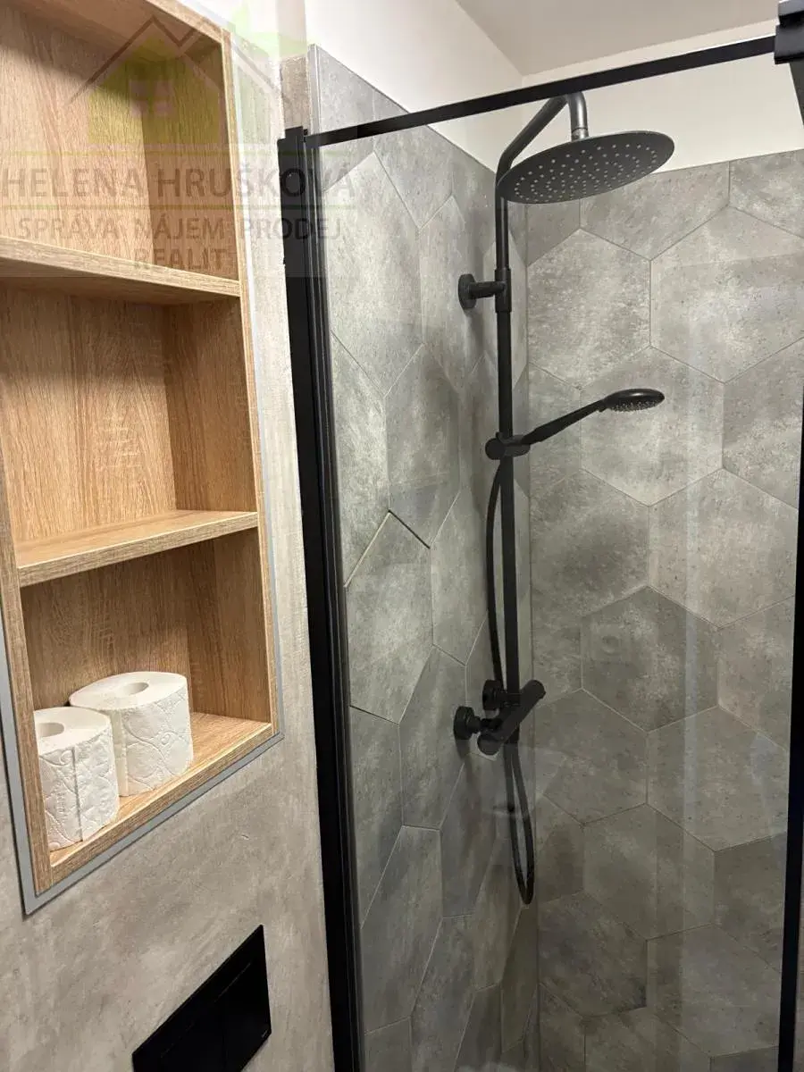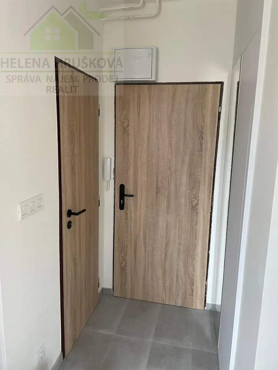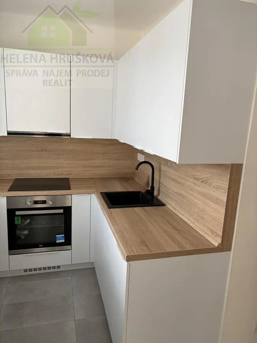 Byt tvoří předsíň s úložnými prostory, obývací pokoj, kuchyň s kuchyňskou linkou, vybavená elektrickou varnou deskou, troubou, digestoří, myčkou. Koupelna se sprchovým koutem, WC.