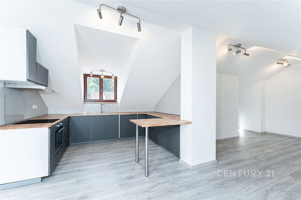 Dům je po rekonstrukci vnitřní i vnější, zateplený, s novou fasádou a střechou. Vznikly zde 3 byty, z nichž tento má spoustu zajímavých prostorových vychytávek a tu největší kuchyň. Kromě kuchyňské linky se spotřebiči je nezařízený a je jen na vás, jak si prostor po svém zabydlíte. Vstupní dveře do bytu jsou ve druhém patře a schodiště je už součástí bytu. Na odpočívadle je komora s plynovým kotlem a k odkládání věcí.