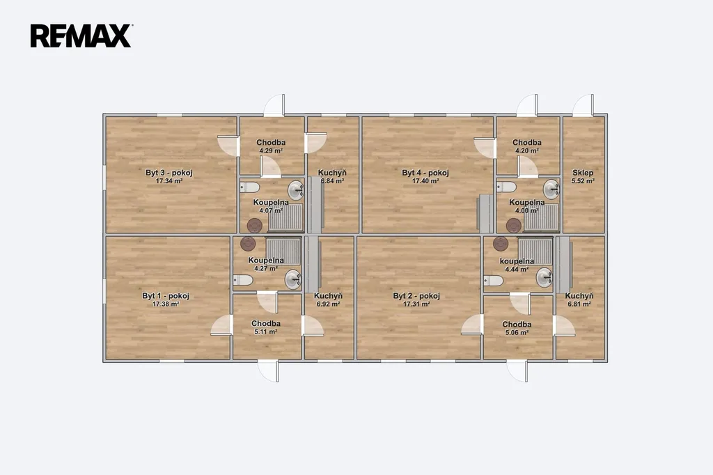 4 bytové jednotky 1+1