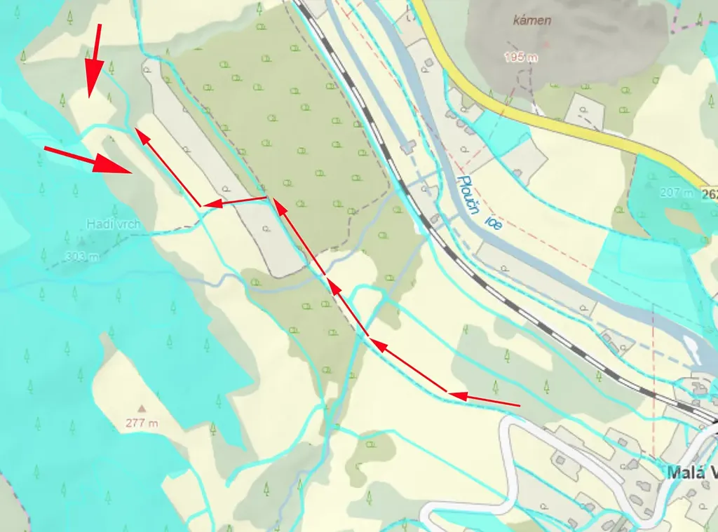 Prodáme pozemek, louku s porostem stromů v k.ú. Malá Veleň, parc.č. 592/7. Přímo přístupný po obecních cestách (viz poslední obrázek).
