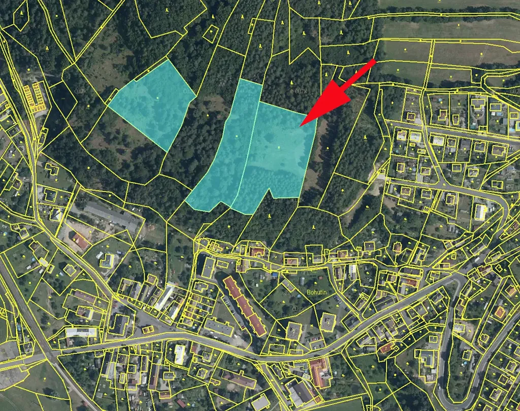 Prodáme pozemek, mírně svažitou louku (jižní svah) s porostem stromů (možno vykácet) v k.ú. Bohutín nad Moravou, parc.č. 234.