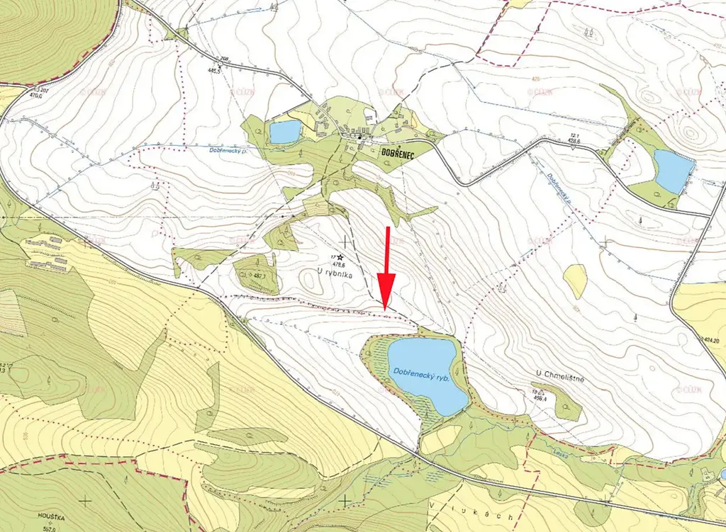 Prodáme pozemek, obdělávanou louku částečně porostlou stromy (možno vykácet) v k.ú. Dobřenec, parc.č. 75/4, přímo přístupnou z místní polní cesty.
