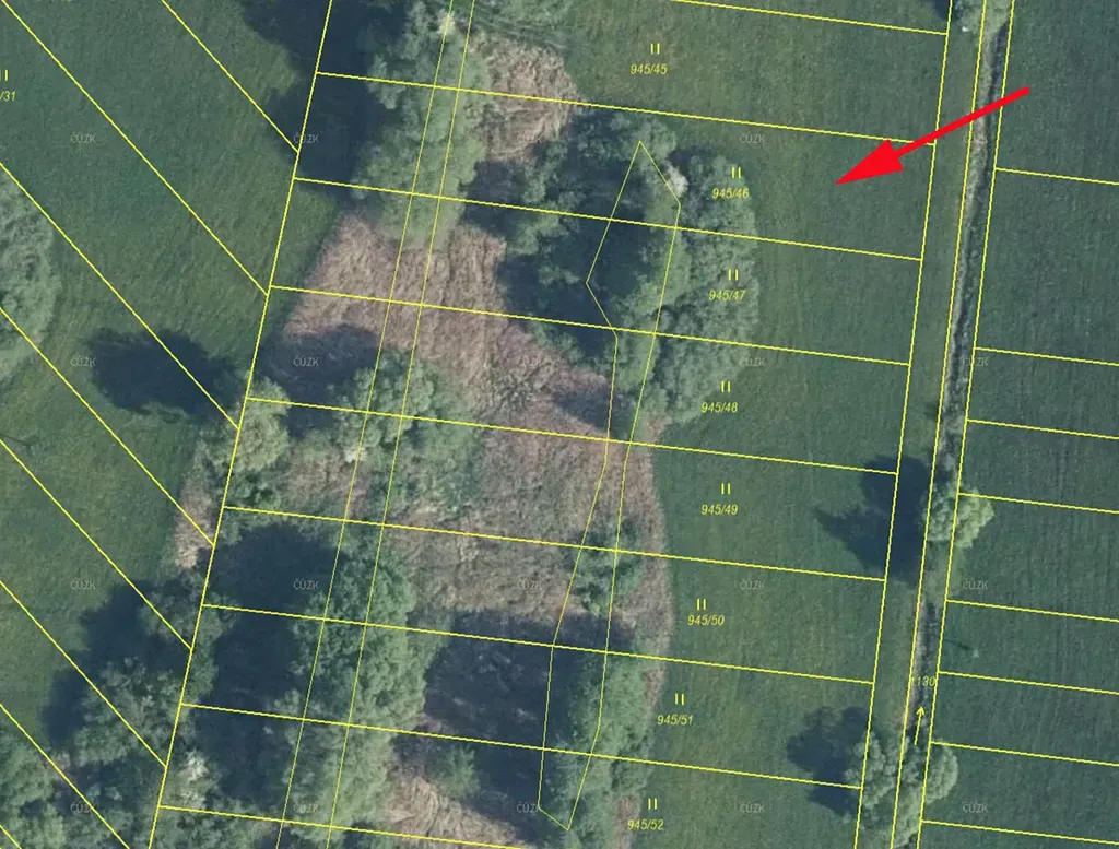 Prodáme pozemek, louka s porostem několika dřevin (možno snadněji kácet) v k.ú. Pekla, parc.č. 945/46.
