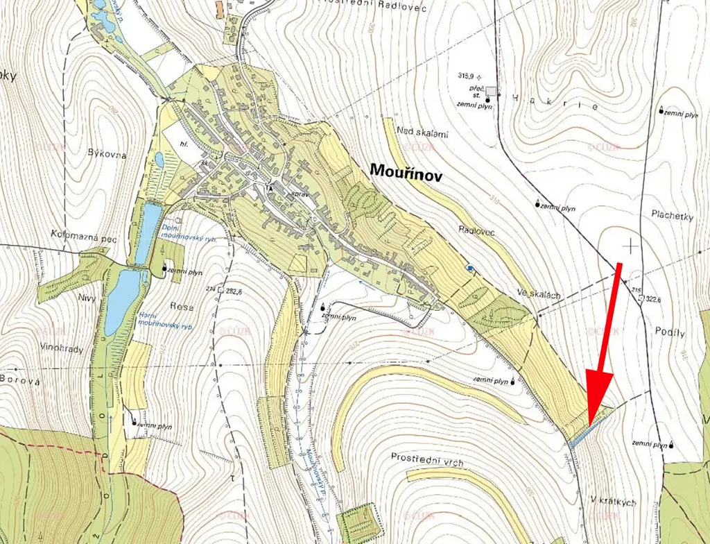Prodáme pozemek, ostatní plochu s porostem stromů (možno vytěžit) v k.ú. Mouřínov, parc.č. 3631. Přístup ze zpevněné silnice.