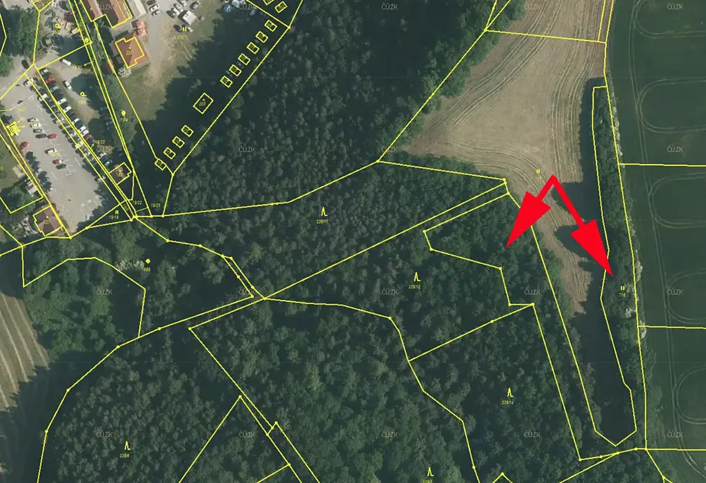 Prodáme pozemek, louku, lesní porost na nelesním pozemku (možno kácet snadněji, než v lese) s porostem různých dřevin (zejm. listnatých) v k.ú. Rájov, obec Zlatá Koruna, parc.č. 716.