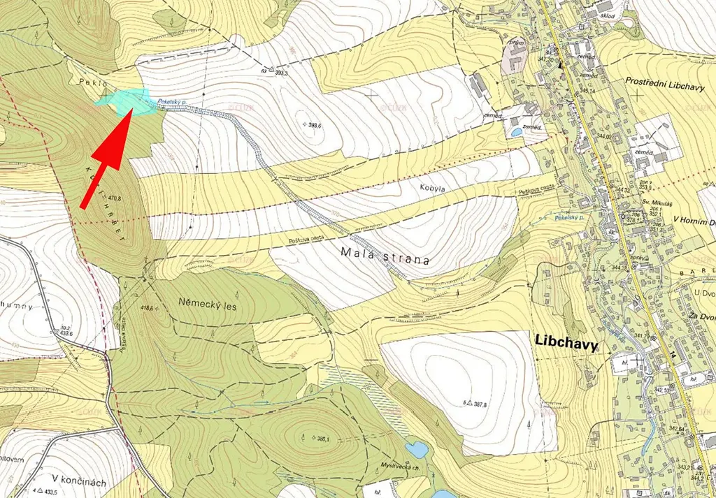 Prodáme pozemek v k.ú. Horní Libchavy, parc.č. 1101/1 a další. Louka dobře zavlažovaná, po severním okraji teče Pekelský potok.