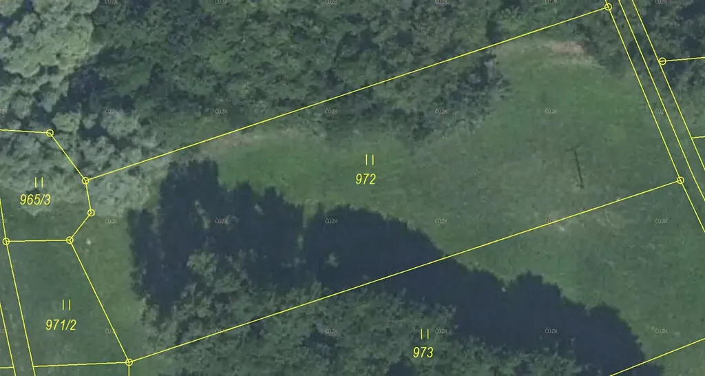 Prodáme louku s několika stromy (možno vykácet) v k.ú. Černovír, parcela č. 972.