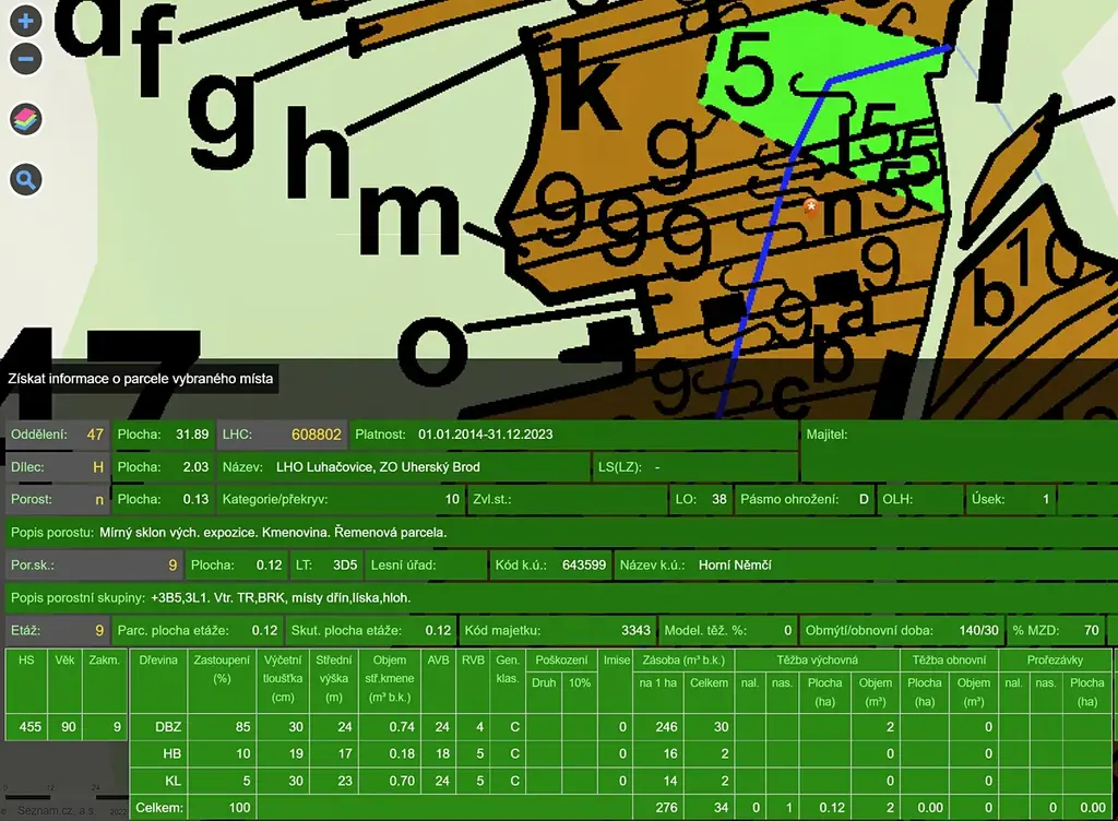 Prodáme lesní pozemek (možno část těžit) v k.ú. Horní Němčí, parcely č. 6181, 6182 a 2774. Listnatý porost, zejm. dub, 98let. Louka na pozemku 6181 je propachována, výpovědní doba 3 roky.