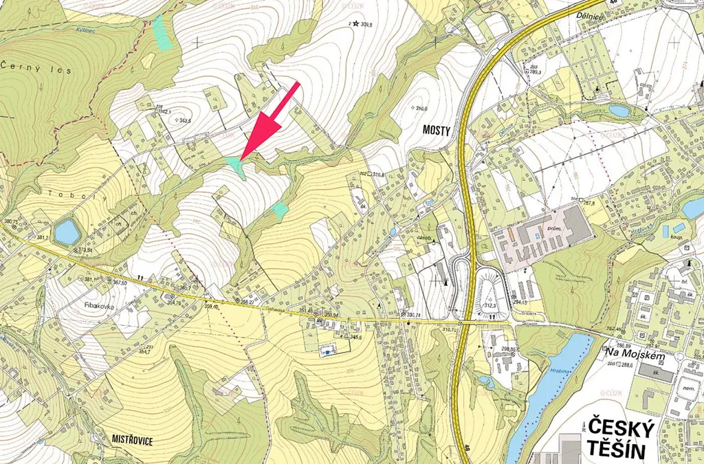 Prodáme les v k.ú. Mosty u Českého Těšína, parcely č. 1171/2 a 1172/1, přímo navazující na zástavbu, uprostřed teče potok.