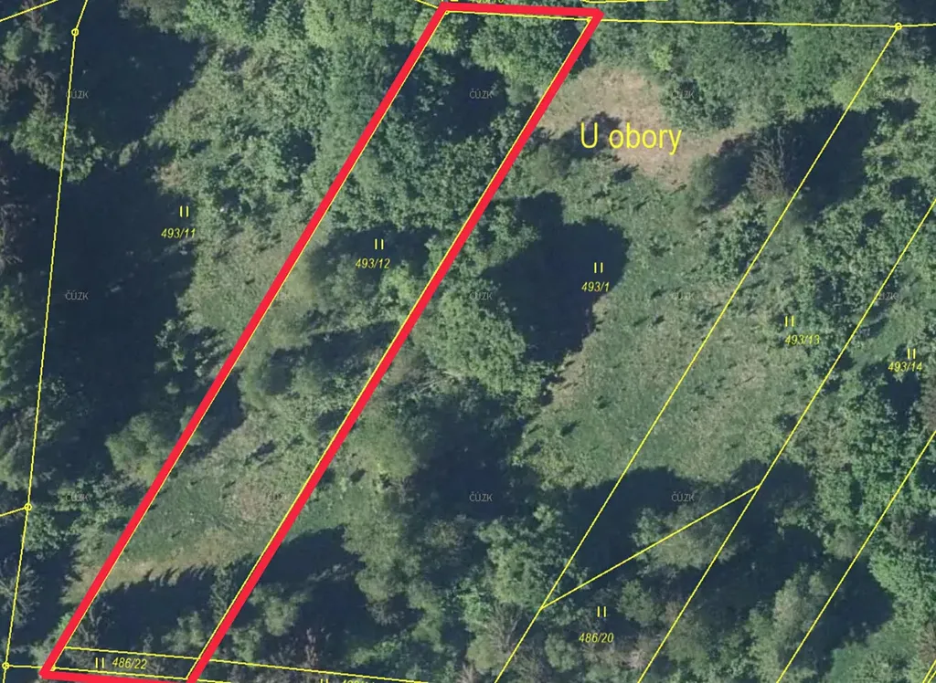 Prodáme louku se stromy (možno kácet) v k.ú. Nový Hrádek, parcely č. 493/12 a 486/22.