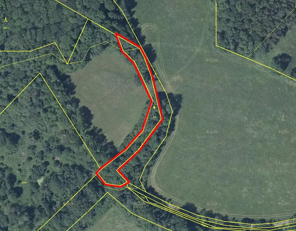Lesní porost na nelesním pozemku, neplatí přísné předpisy pro les, možno částečně těžit.