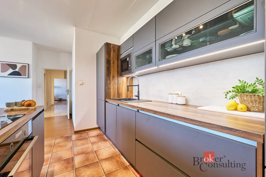 Interiér bytu prošel postupnou modernizací. Koupelna byla rekonstruována v roce 2019, v roce 2022 byla instalována nová kuchyňská linka a v roce 2025 proběhla částečná rekonstrukce podlah.