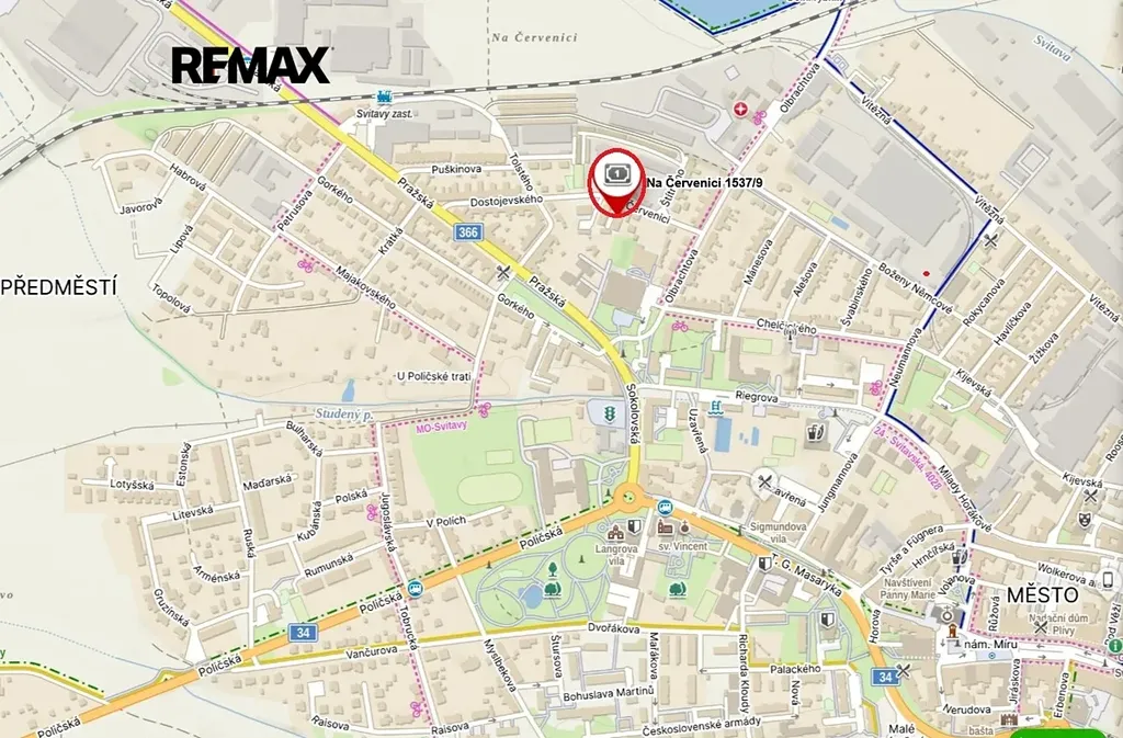 Nedaleko domu se nachází obchod, školy (MŠ, ZŠ), sportovní hala a Svitavský rybník.