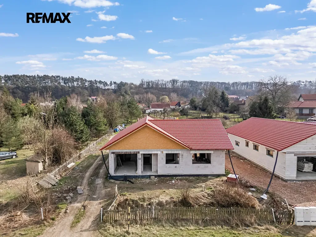 Dům se nachází ve fázi, kdy je již dokončena hrubá stavba – tedy ta nejnáročnější a finančně nejnákladnější část výstavby. Objekt je nově osazen okny, vstupními dveřmi a garážovými vraty, což umožňuje okamžité pokračování prací bez zdržení. K nemovitosti je k dispozici kompletní projektová dokumentace, která vám výrazně usnadní dokončení stavby dle vlastních představ a standardů.