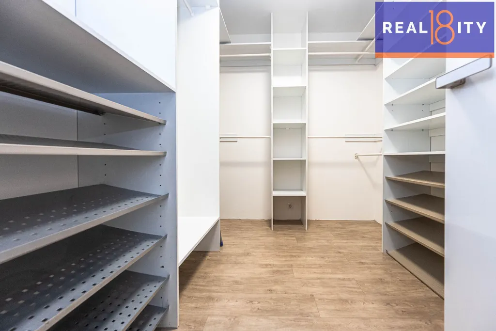 Připraven k okamžitému nastěhování – nabízen včetně veškerého nadstandardního vybavení a nábytku na míru. Kuchyně značky Hanák se spotřebiči Bosch, kožená sedačka a další značkové zařizovací předměty interiéru, dětský pokoj z masivu udělaný na míru, prostorná šatna s botníkem a policemi, vestavěné skříně.