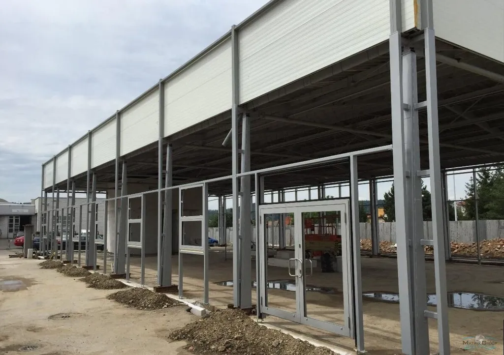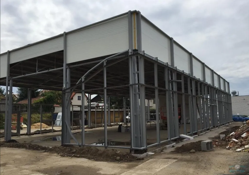 Nabízíme k prodeji zateplenou halu včetně hliníkových výkladů, oken a dveří k opětovné montáži na jiném pozemku. Vhodné pro prodejní a výstavní prostory, případně i skladové. Hala byla postavena před 10 lety. Jsme připraveni autosalon demontovat a případně smontovat. Cena 1 500 000 Kč. Konstrukce je ocelová, sendviče jsou s čedičovou vatou. Foto je z výstavby, aby byla vidět konstrukce. K dispozici je i vzduchotechnika, topení a boiler, tepelné čerpadlo a osvětlení. Halu můžete umístit například před sídlo firmy, nebo provozu a nabídnot zákazníkům komfortnější obchodní servis. V případě vážného zájmu je k dispozici i servis pro demontáž a montáž na Vašem pozemku. Jedná se o velmi zajímavou příležitost, protože výstavba nové haly s těmito dispozicemi by Vás jistě stála o několik set tisíc až milionů více. Kontaktujte nás pro bližší informace.