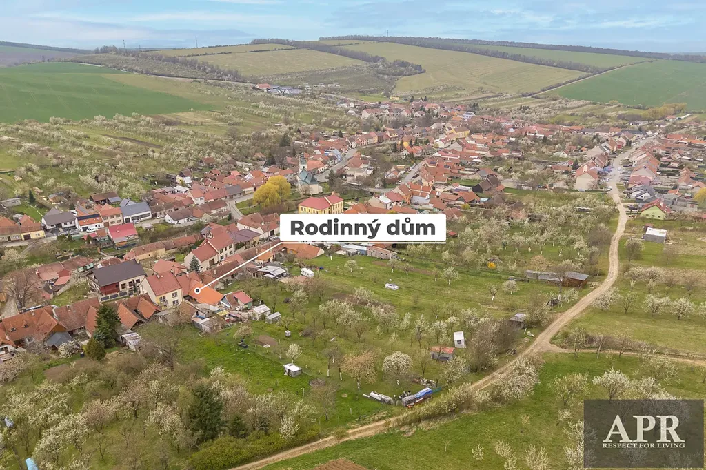 Na pozemku se nachází ovocné stromy a dostatek prostoru pro další využití (zahrada, relax, případná další stavba).