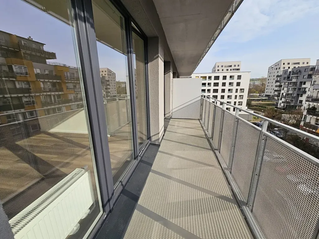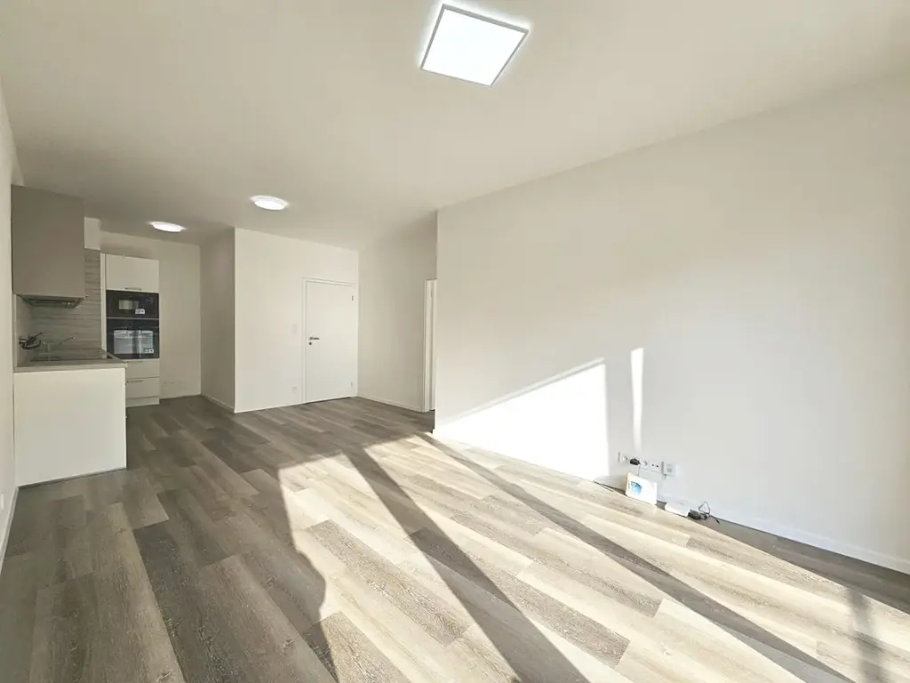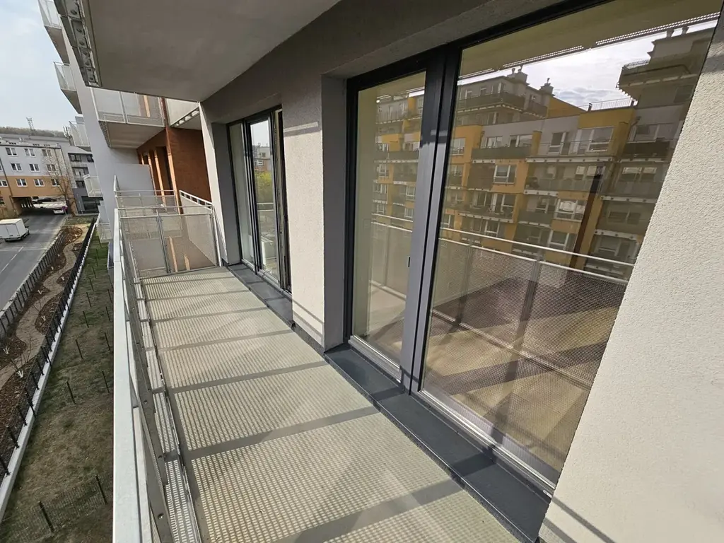 Nabízíme k dlouhodobému pronájmu nový byt 2+kk (52,4 m²) s velkým balkónem (9 m²) a uzavíratelnou garáží (19 m²) ve 3. patře novostavby na Praze 9, Libeň, ulice Gerstelova.