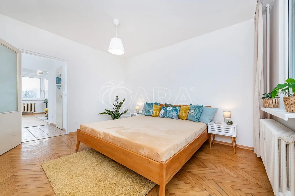 Byt má nové vstupní bezpečnostní dveře. Přestože je byt ihned obyvatelný a vše je v něm funkční, je v původním stavu s umakartovým jádrem. V obytných místnostech jsou dřevěné parkety, v kuchyni laminátová plovoucí podlaha a ve zbytku bytu dlažba. Doporučila bych po dosloužení současných prvků jeho kompletní rekonstrukci podle Vašich představ. Byt má po rekonstrukci potenciál pohodlného bydlení o žádané dispozici 2+1. Byt je vhodný i na investici na pronájem. Byt nemá žádné úvěrové zatížení.