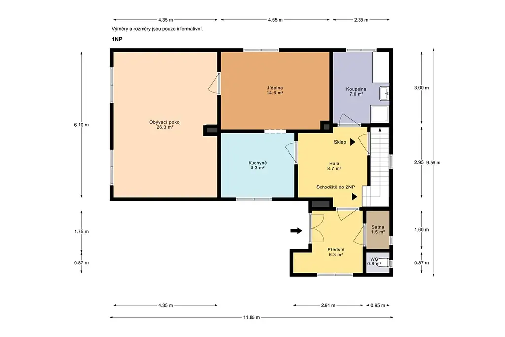 Rodinný dům se třemi nadzemními podlažími nabízí dostatek prostoru pro jednu velkou rodinu, případně i pro dvě domácnosti, které mohou pohodlně fungovat pod jednou střechou. Podlahová plocha o velikosti přibližně 193 m² poskytuje variabilitu a umožní novým majitelům naplnit jejich představy o ideálním bydlení.