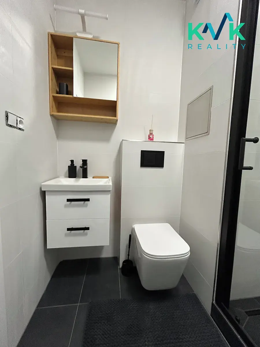Dispozice a vybavení: koupelna se sprchovým koutem a WC, kuchyňská linka Gorenje- elektrický sporák, varná deska indukce, digestoř, pračka – vše nové, plovoucí podlaha