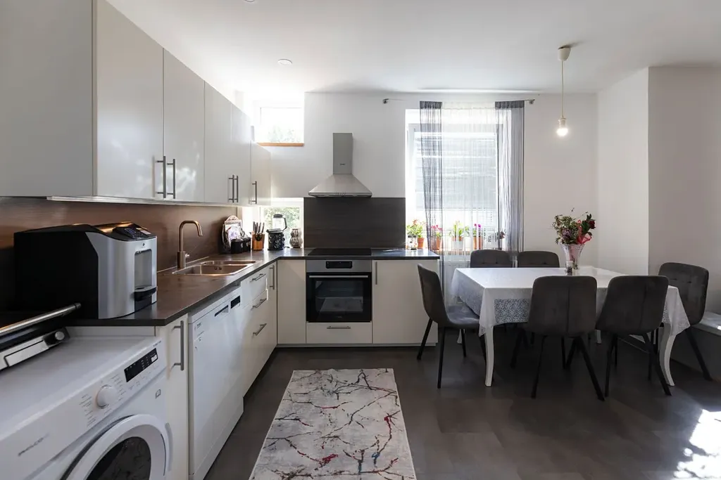 1NP byt 3+1 o výměře 83,3m2 (+sklep 20m2, garáž ve dvoře 12,5m2). Tento byt prošel kompletní rekonstrukcí v roce 2021.
