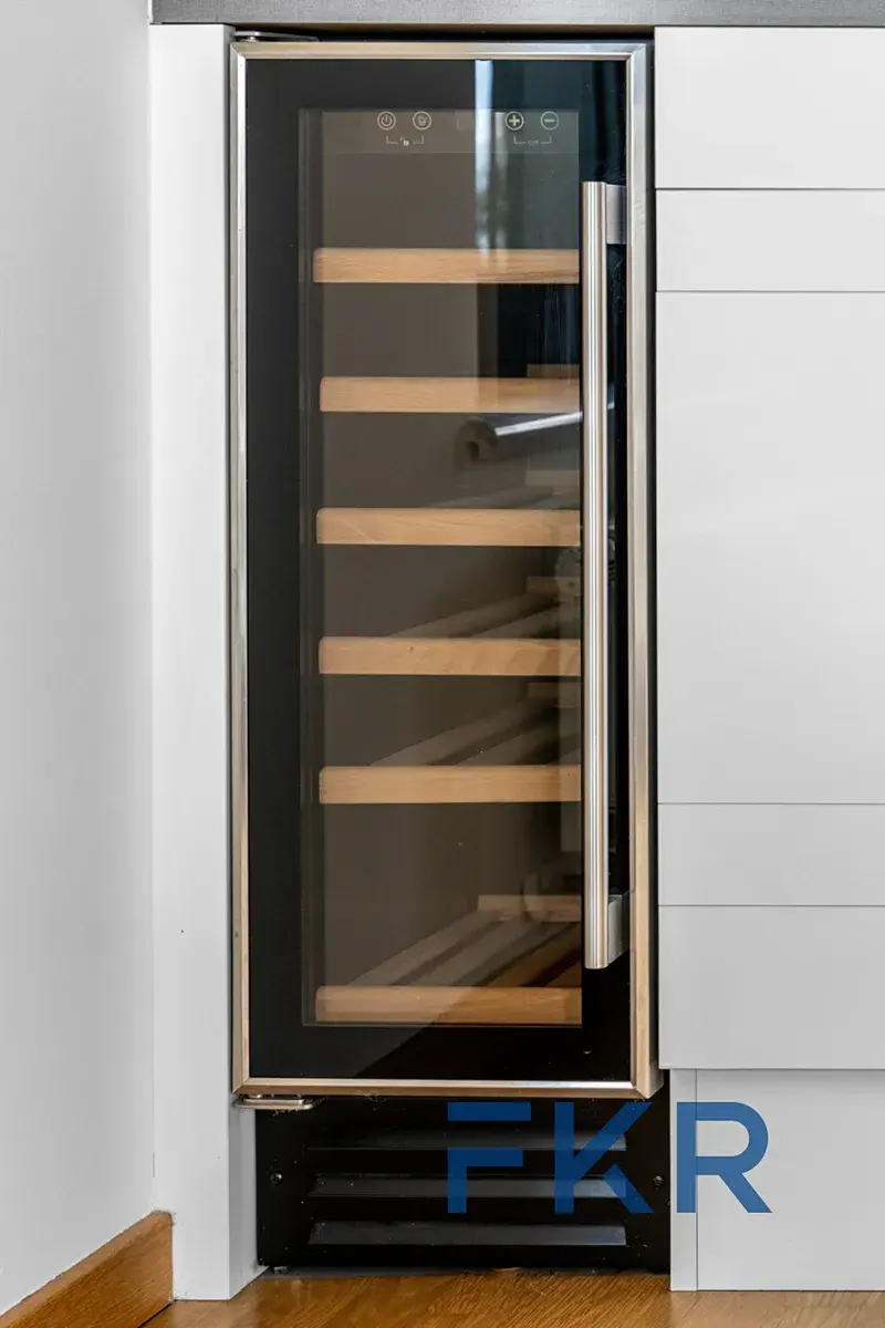 Hlavní obytná část s prostorným balkonem a otevřeným výhledem je navržena jako denní prostor s navazující kuchyní. Velkoformátová okna zajišťují dostatek přirozeného světla. Moderní kuchyňská linka nabízí velkorysé pracovní i úložné zázemí a zároveň přirozeně odděluje kuchyň od obytné části (myčka, lednice, indukce, vinotéka, digestoř).