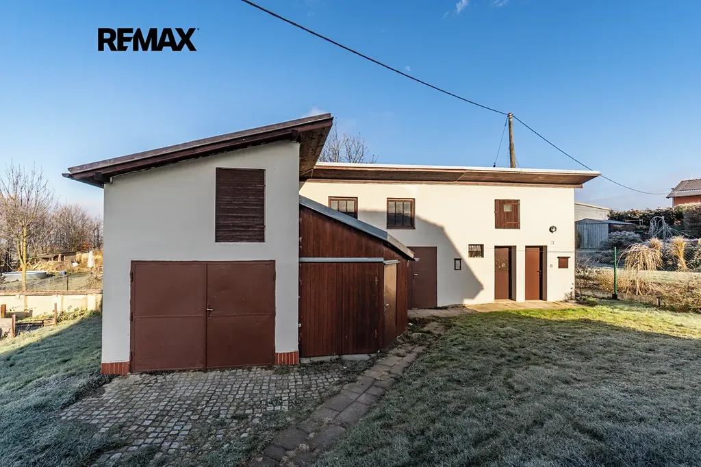 Součástí pozemku o celkové rozloze 1651 m² je také zděná stavba z 90. let o výměře 59 m², kde najdete garáž s dílnou a dobře řešené zázemí pro uložení nářadí, techniky a dalšího vybavení. Na zahradě se nachází také skleník pro nadšené zahradníky a několik vzrostlých ovocných stromů. Díky velikosti pozemku lze pozemek rozdělit na dvě stavební parcely.