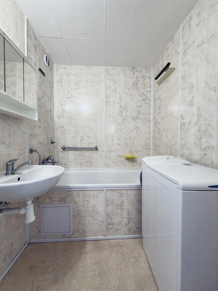 Výhodou je dětské hřiště přímo u domu a skvělá dopravní dostupnost na metro B Luka.