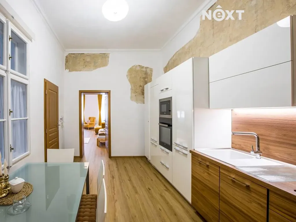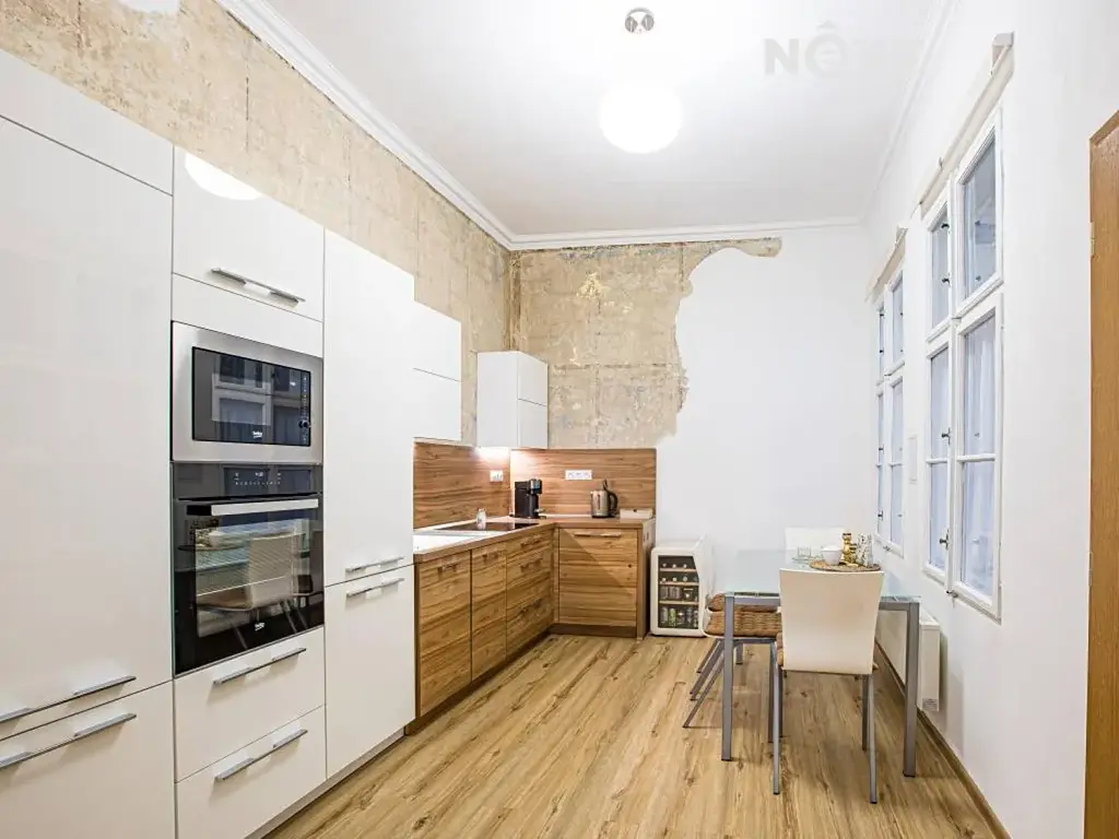 Byt s dispozicí 2+1 prošel kompletní a velmi vkusnou rekonstrukcí, díky které působí moderně, útulně a zároveň respektuje charakter původní městské zástavby. Vysoké stropy dodávají interiéru vzdušnost a opticky jej ještě více zvětšují, velká okna zajišťují dostatek denního světla po celý den a zároveň nabízejí příjemný výhled přímo na náměstí.