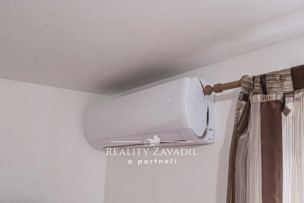 Velkou výhodou je kompletní vybavení včetně kuchyňské linky, skříní, klimatizace, bezpečnostních dveří a trezoru – stačí přijít a bydlet, případně ihned pronajímat.