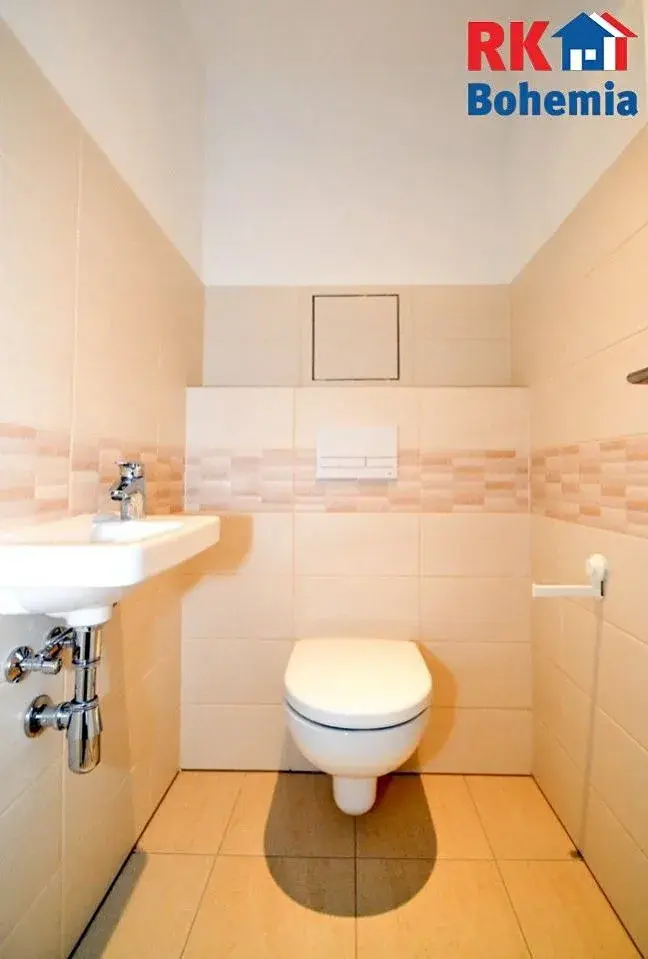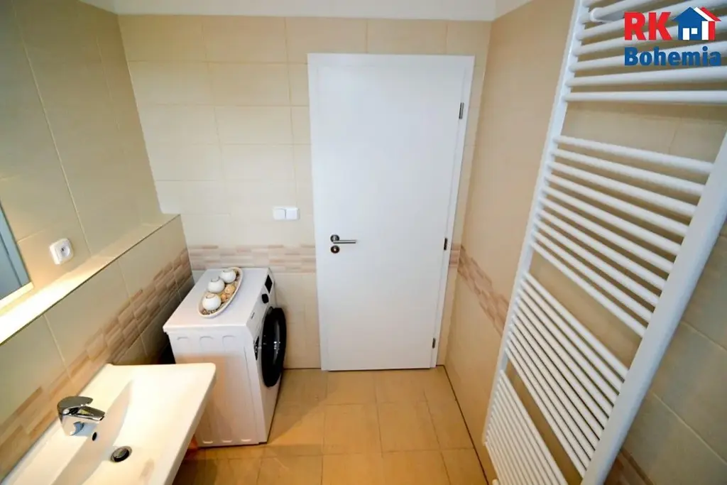 V koupelně se nachází vana, umyvadlo, WC a příprava na pračku. V kuchyni je příprava na myčku.