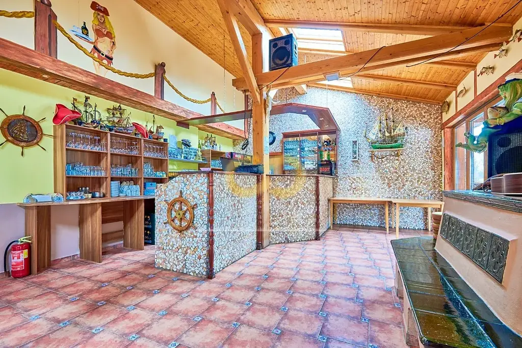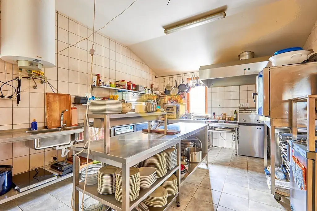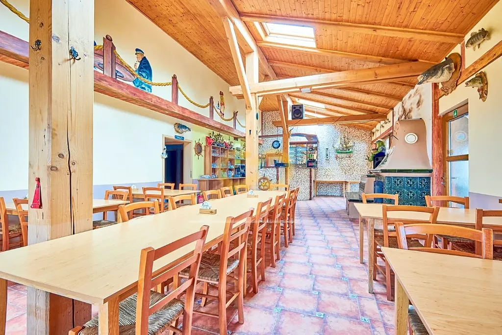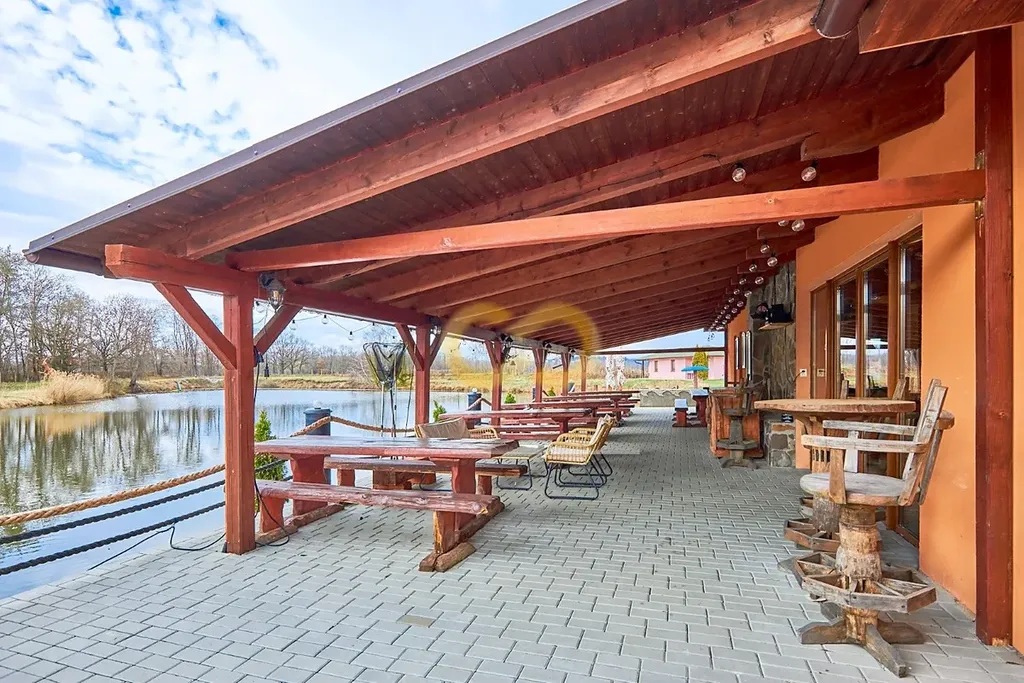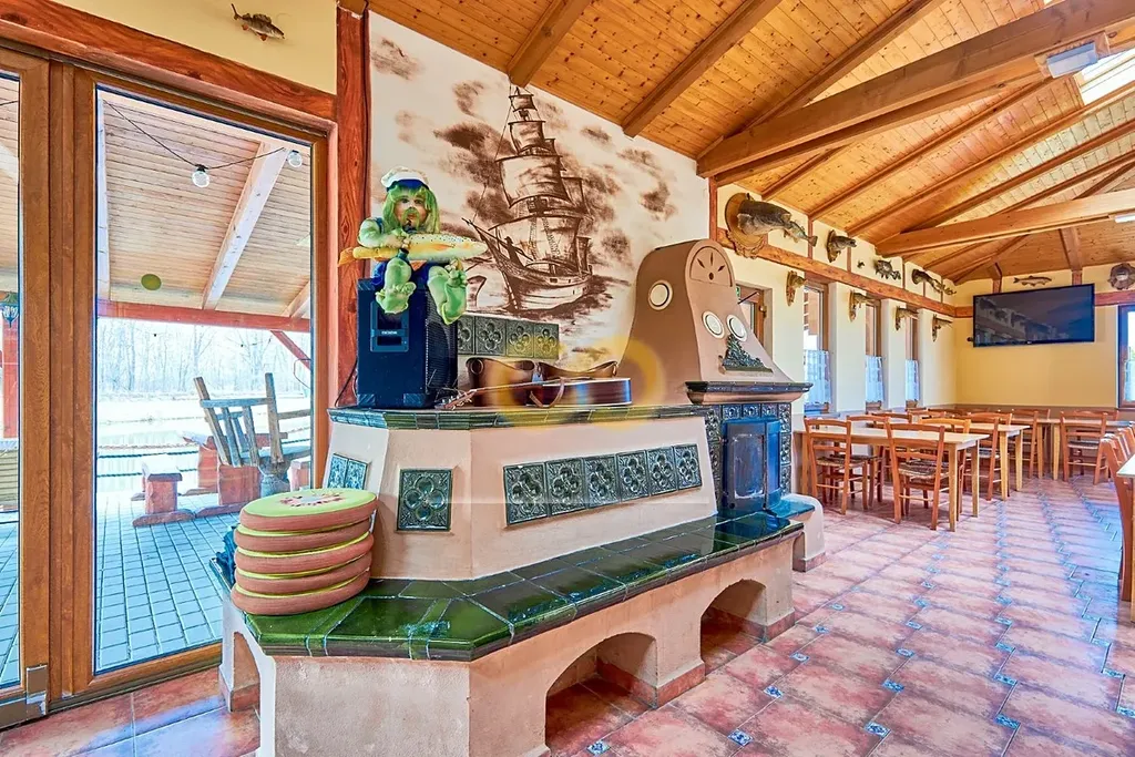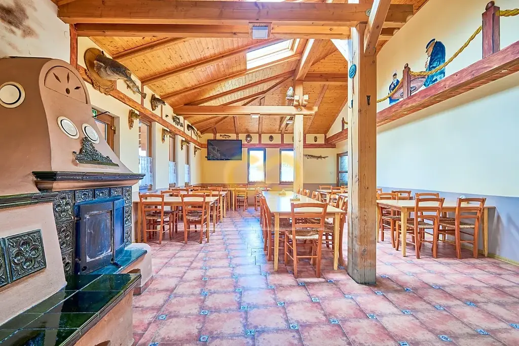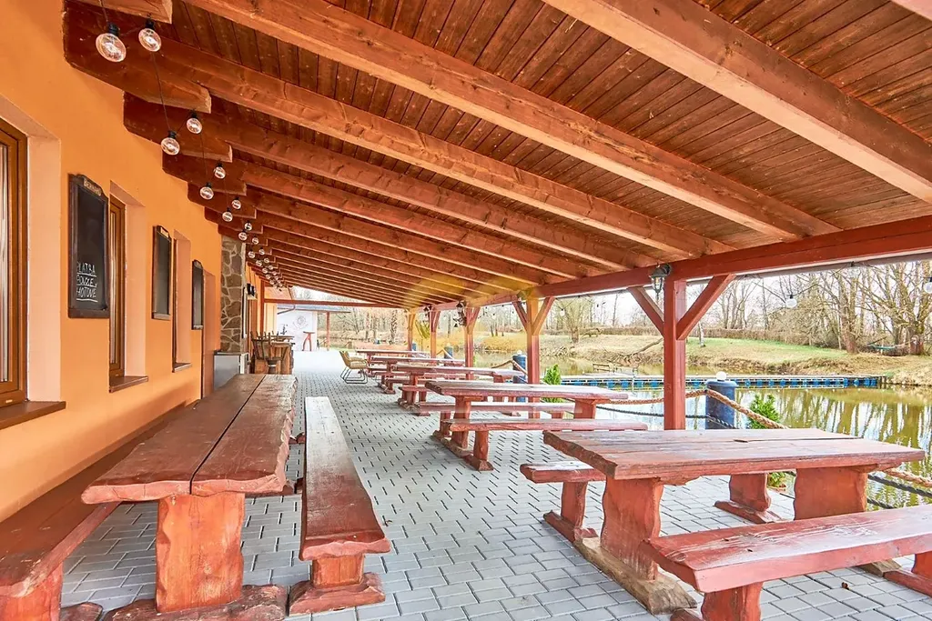 V areálu je také zařízená restaurace s plně vybavenou kuchyní – stačí přivést kuchaře. Má velkou terasu a leží přímo u cyklostezky, takže tu nebudete mít o hladové výletníky nouzi.