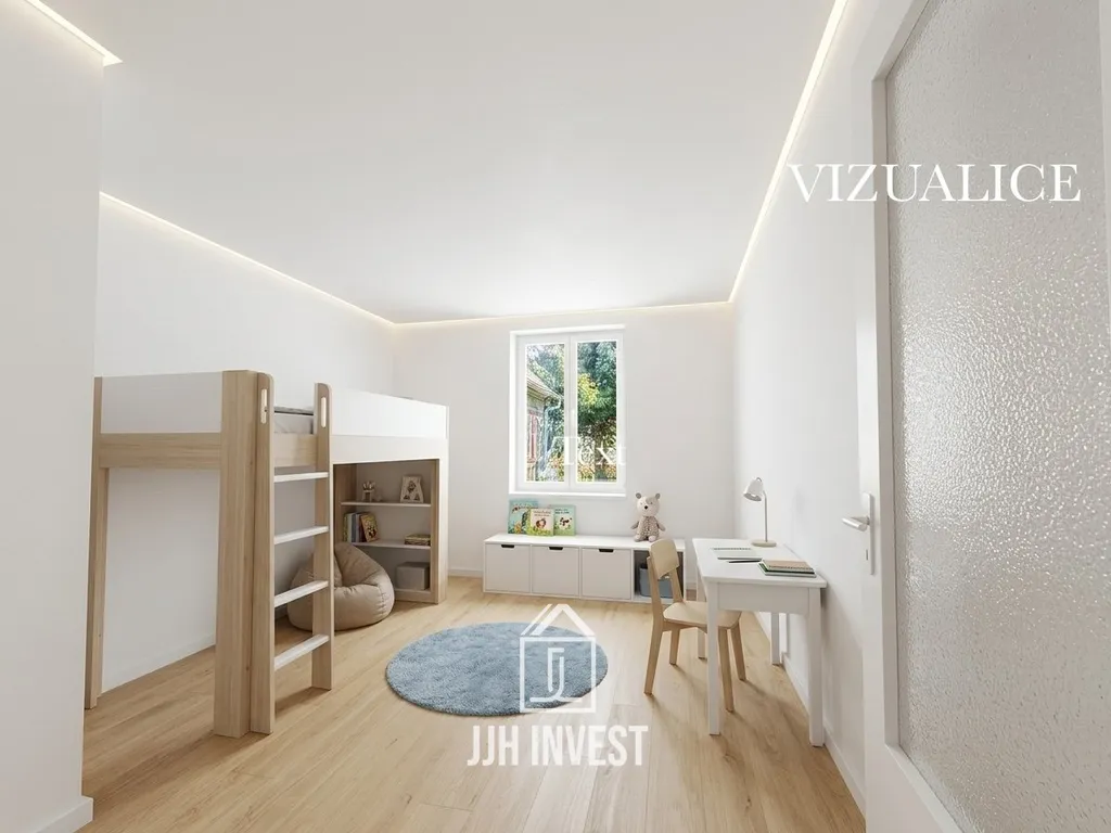 Byt se skládá z obývacího pokoje s krbovými kamny, dětského pokoje, ložnice, koupelny se zděným jádrem, samostatného WC a dvou kumbálů. K bytu náleží část půdy a sklep 4 m². Parkování je možné přímo před domem.