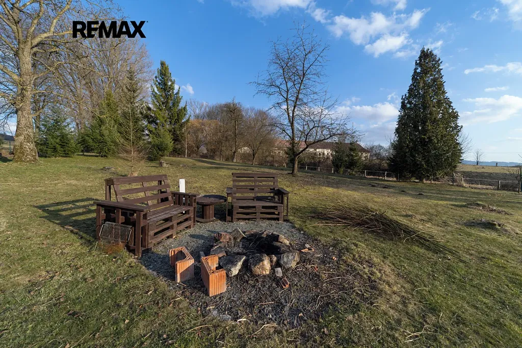 Nemovitost dále doplňuje příjemná zahrada s krytým posezením a krbem, která vytváří ideální prostor pro večerní posezení. Součástí zahrady je také ohniště a dětské hřiště.