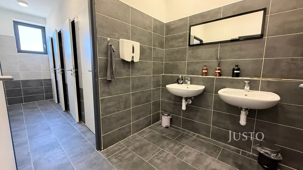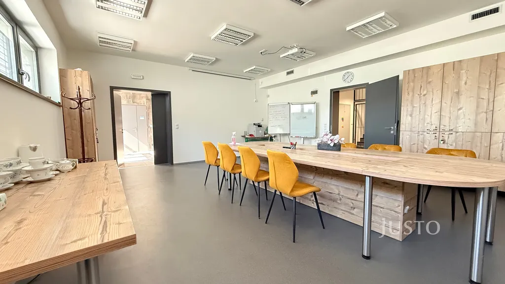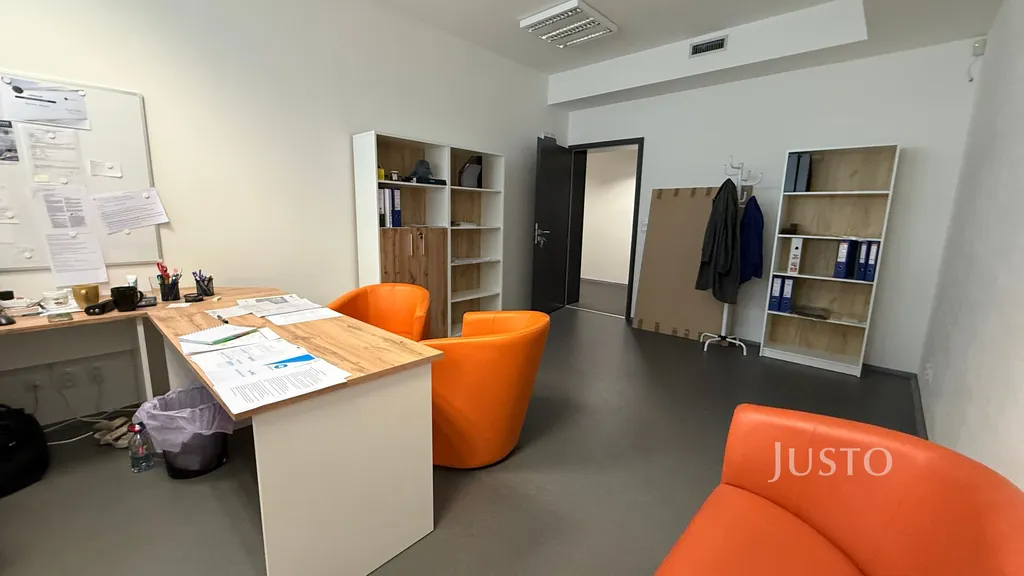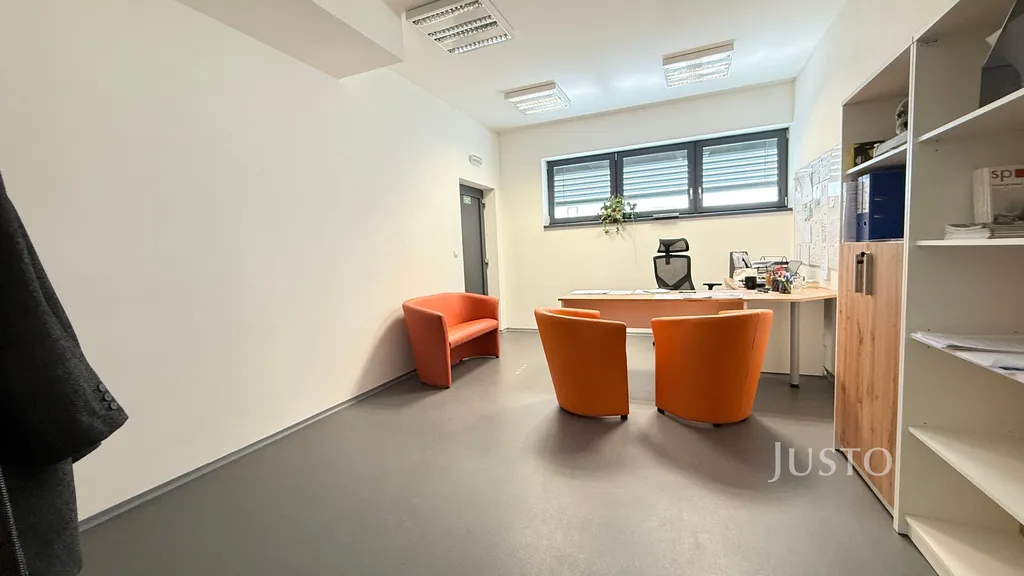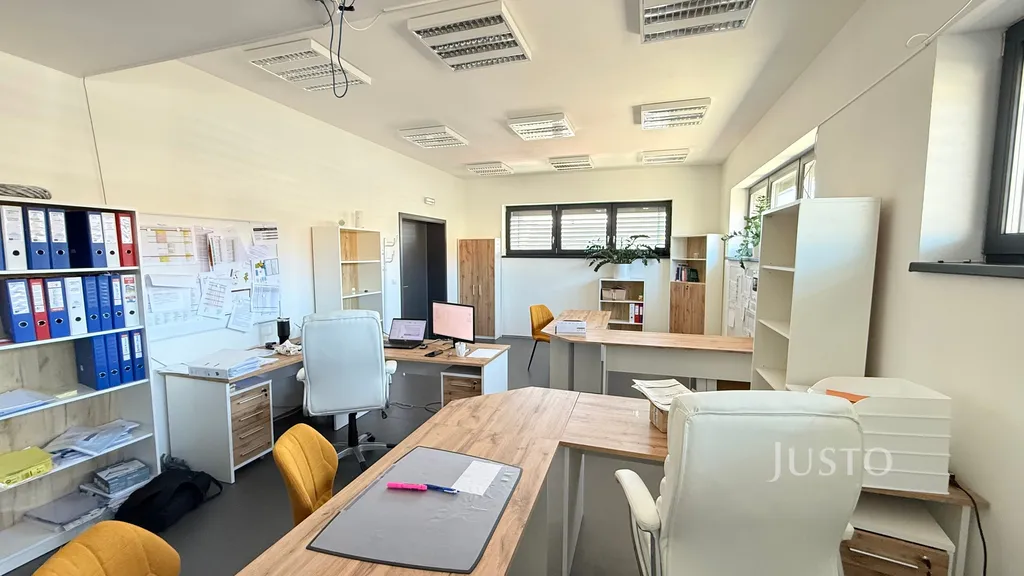 Kanceláře jsou umístěny v 1. nadzemním podlaží a nabízejí flexibilní uspořádání pro zázemí menší i středně velké firmy. Prostory jsou velmi dobře dispozičně řešeny, s dostatkem denního světla a nadstandardními plastohliníkovými okny. Moderní recepce a jednací místnost s designovým nábytkem podtrhují reprezentativní charakter celého objektu. Podlahy i stěny jsou z kvalitních materiálů, které vytvářejí příjemné a profesionální pracovní prostředí. Objekt je bezbariérový, což zajišťuje pohodlný přístup pro všechny zaměstnance i návštěvy.