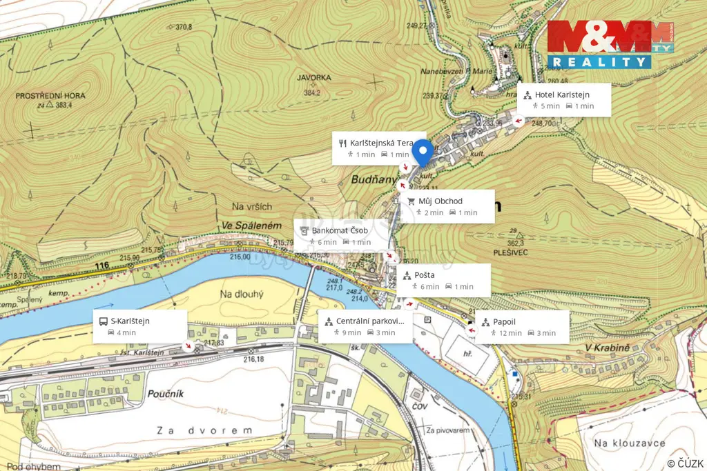 K pronájmu obchodní prostor přímo na hlavní pěší zóně vedoucí k hradu Karlštejn. Obchod s podlahovou plochou cca 2,5x2 m2, k vystavování zboží lze využít i prostor před prodejnou o výměře 6x3 m2. Částečně zařízeno - venkovní výstavní skříň, police. Není vhodné pro občerstvení. Parkování pro provozovatele na hromadném parkovišti za zvýhodněný roční poplatek. Karlštejn má pravidelné vlakové spoje. Kromě návštěvy známého hradu se zde koná spousta vyhlášených kulturních a společenských akcí. Více informací u makléře.