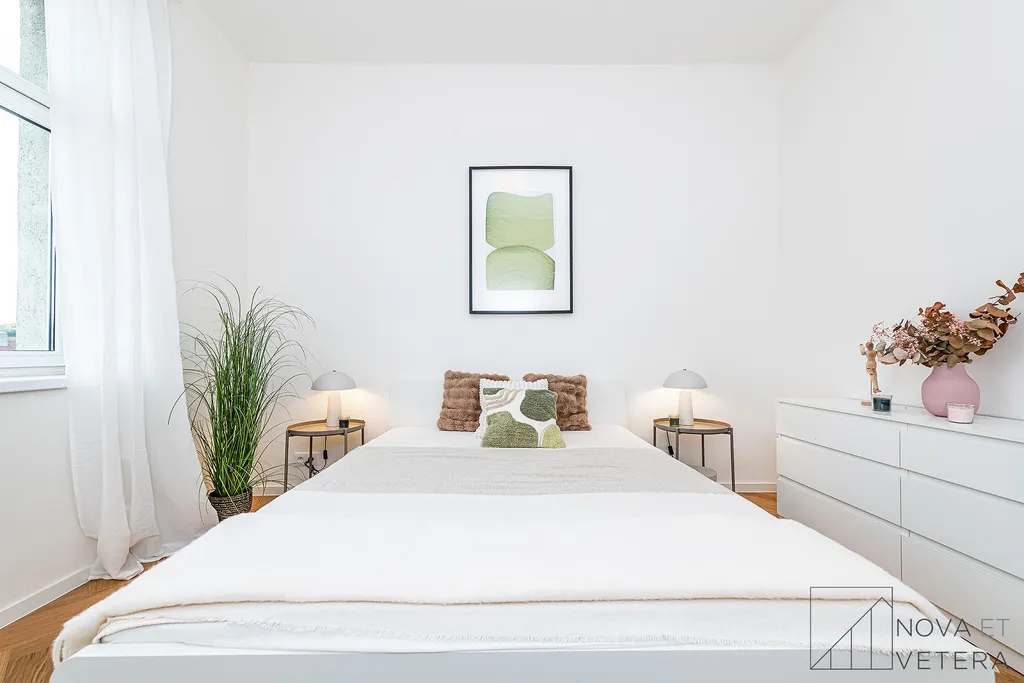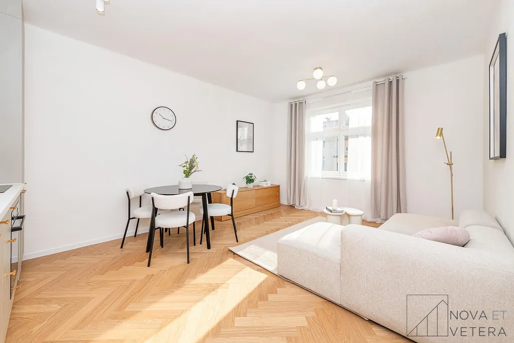 Vzhledem k probíhající rekonstrukci jsou fotografie bytu dočasně ilustrativní a pocházejí z již dokončeného projektu, nicméně odpovídají standardům této rekonstrukce. Rádi vám ukážeme dokončené referenční byty nebo i aktuální průběh rekonstrukce přímo na místě.