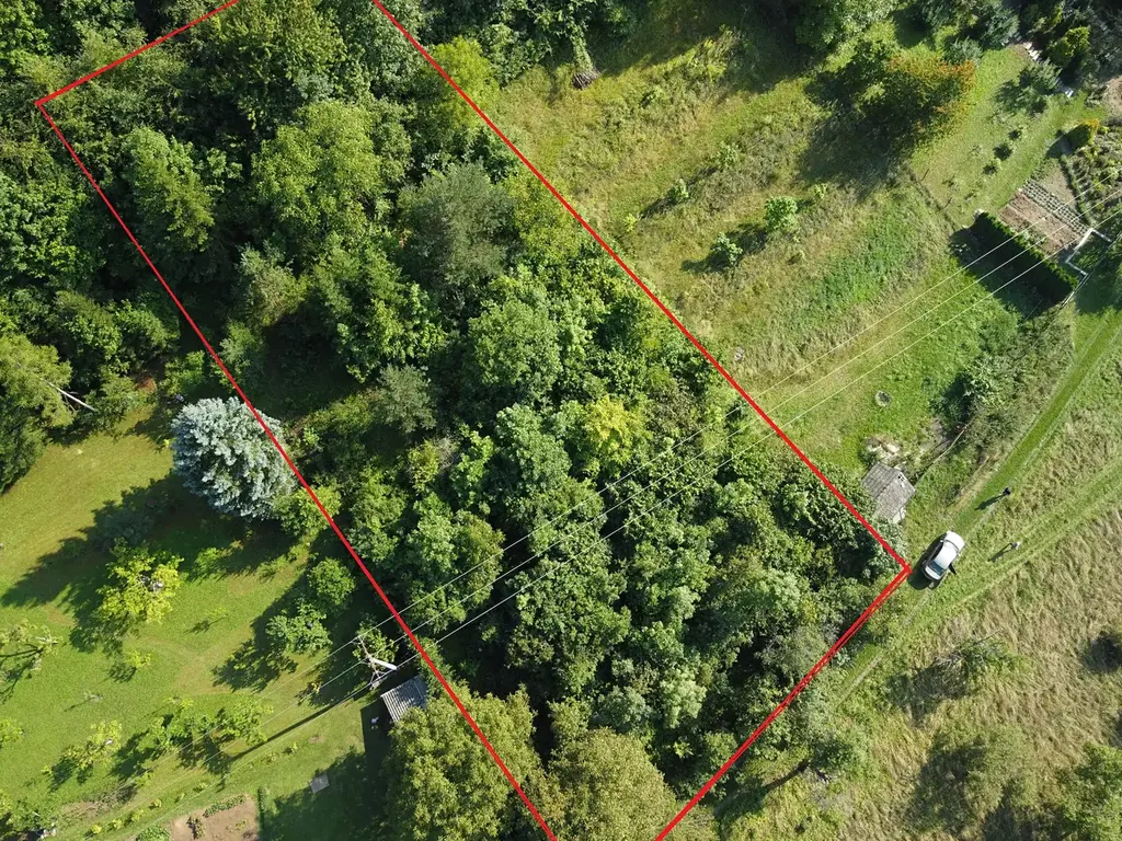 Pozemek je oplocen, mírně svažitý se vzrostlými stromy ( ovocné a jehličnaté stromy a náletové dřeviny ), s možností realizovat stavbu do 25 m², ( zahradní domek, kolna atd. )