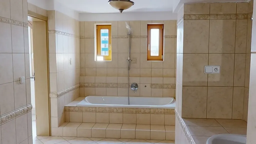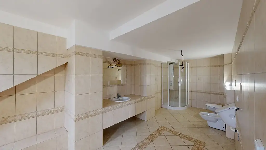 Nadstandardní koupelna (18,41 m²): Velkoryse řešená koupelna vybavená vanou, sprchovým koutem, umyvadlem, toaletou i bidetem.