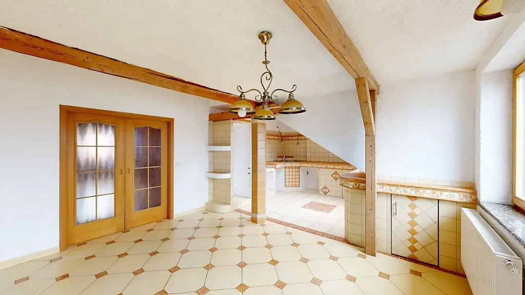 Prostorná kuchyně s jídelnou (26,95 m²): Místnost s dostatkem prostoru pro velký jídelní stůl i moderní kuchyňskou linku.