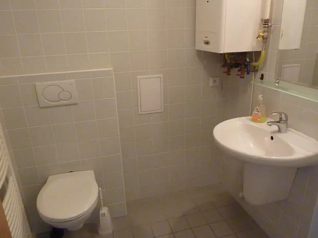 Před tímto pokojem je toaleta s umyvadlem i s místem na pračku.