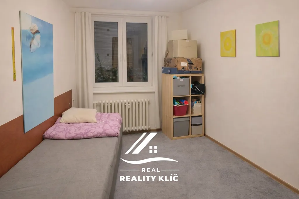 Dále jsou k dispozici dva samostatné pokoje, vhodné jako ložnice, dětský pokoj či pracovna. Byt disponuje koupelnou s vanou a spotřebiči a také samostatným WC.