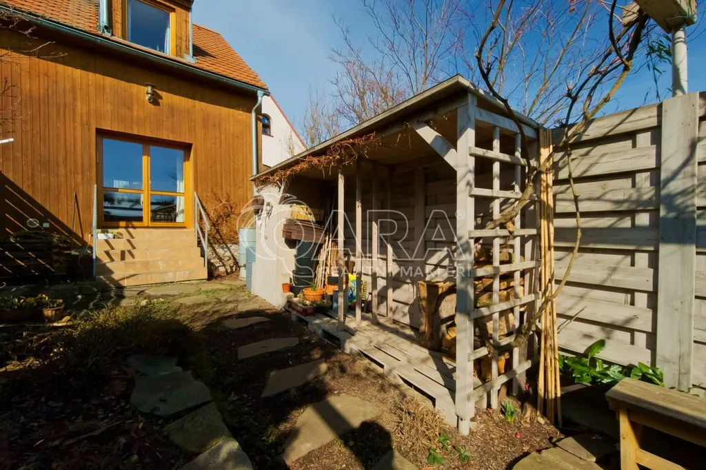 Ke společnému venkovnímu užívání je k dispozici dvůr se společnou kolnou (pro uskladnění kol, zahradních potřeb apod.). Zahrádka s pergolou přístupná z obývacího pokoje je ve výhradním vlastnictví majitele, zajišťuje plné soukromí k posezení, grilování a drobnému zahradničení.