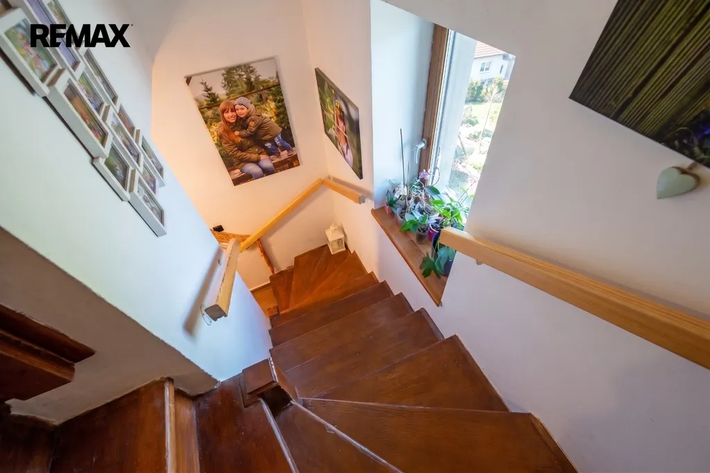 Interiérové dveře a schodiště do podkroví jsou z masivu. Okna jsou plastová trojsklo.