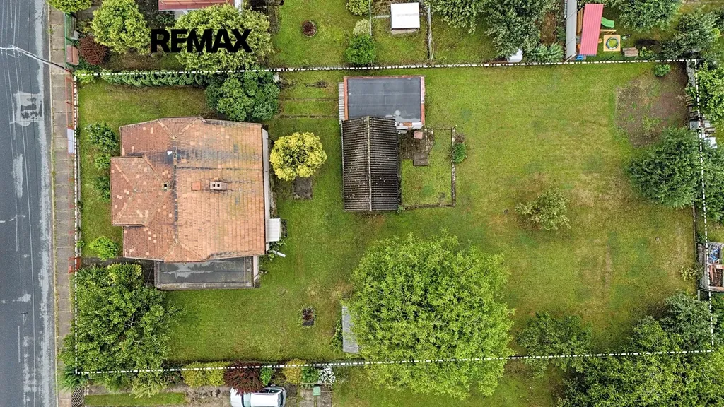 Na zahradě jsou vzrostlé stromy, garáž s dílnou a skleník. Je zde dostatek prostoru pro zahradničení, odpočinek nebo vybudování bazénu a posezení.